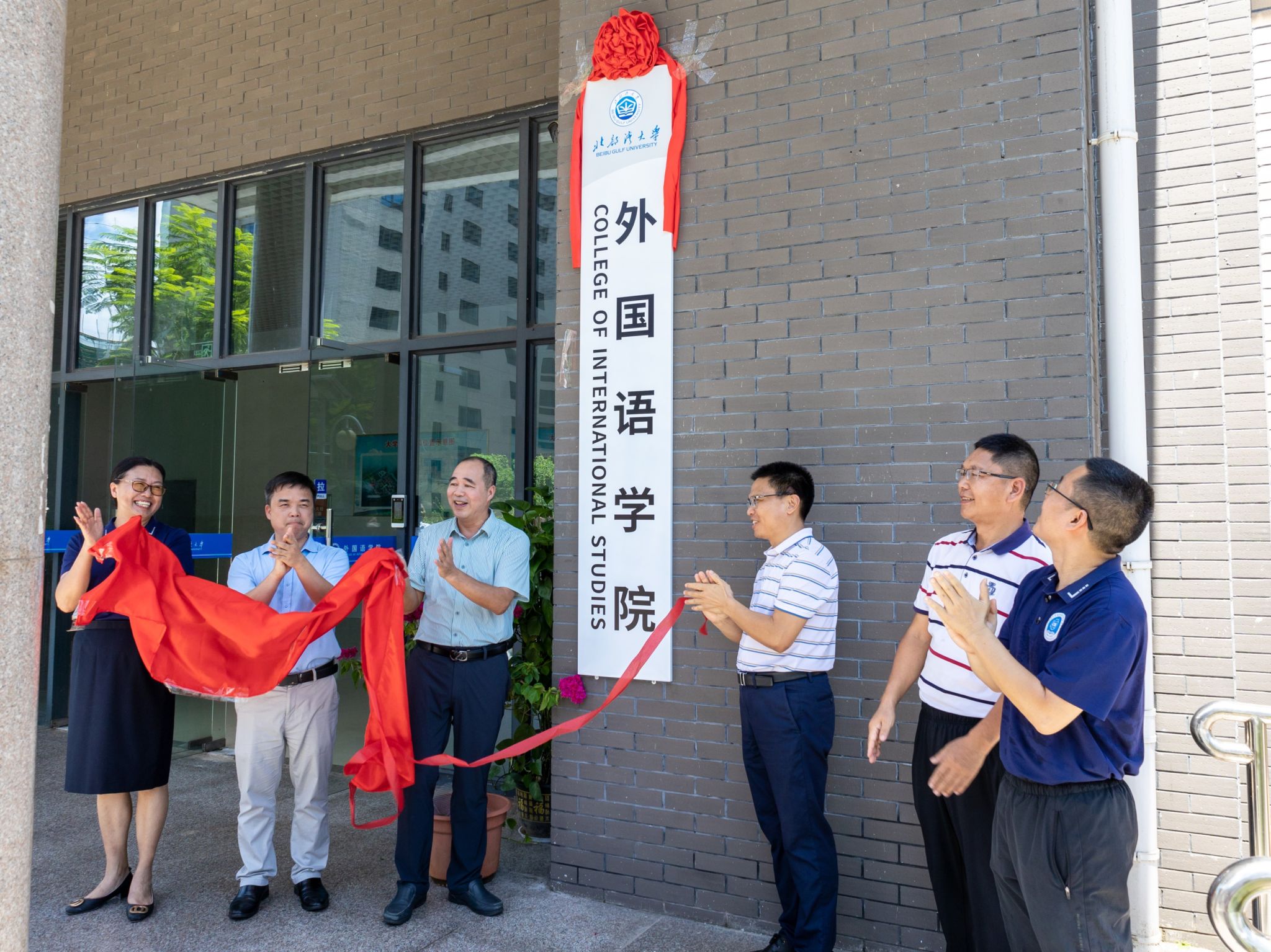7月8日上午,我校外国语学院揭牌仪式在大学生创业园举行。校党委副书记唐高华,校党委常委、宣传部部长裴以明,校长助理、校友办主任任才茂,党校办主任黎树式、外国语学院党委书记潘文昊和外国语学院院长冯丽共同为外国语学院揭牌。潘文昊主持揭牌仪式。