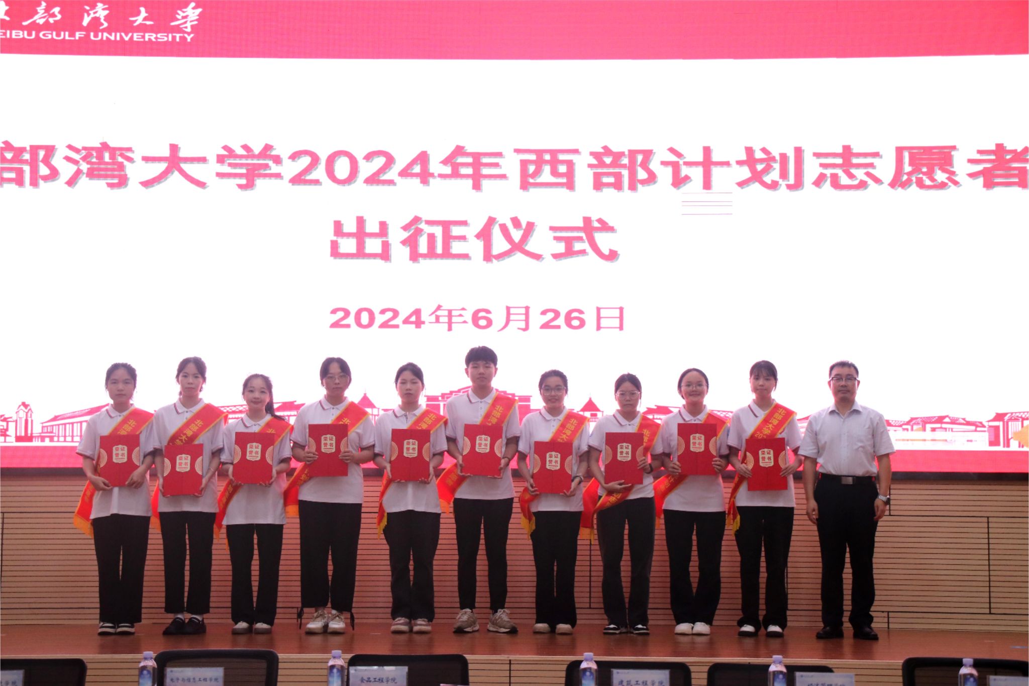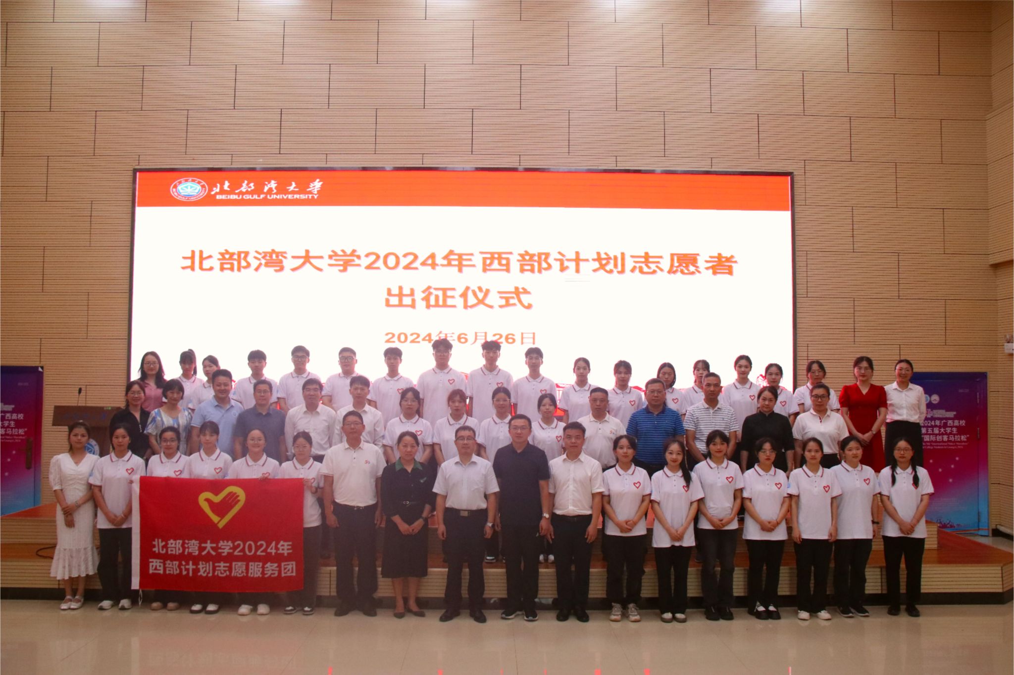 6月26日,北部湾大学2024年西部计划志愿者出征仪式在学校众创空间301报告厅举行。校党委书记徐华蕊,校党委副书记陈磊出席仪式。据悉,2024年,我校一共有44名同学入选西部计划志愿者。