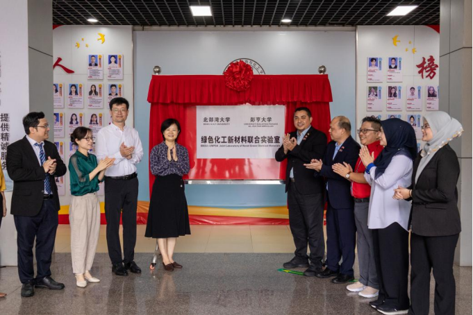 6月4日上午,北部湾大学和马来西亚彭亨大学共建的绿色化工新材料联合实验室在石油与化工学院揭牌成立。校党委常委、副校长陈丹,马来西亚彭亨大学副校长儒斯林出席仪式并为绿色化工新材料联合实验室揭牌。