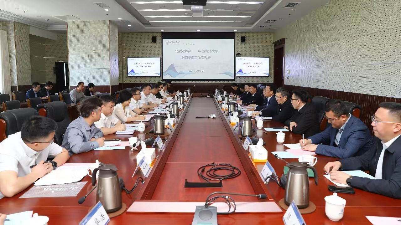 5月15日,校党委书记徐华蕊率队赴中国海洋大学就推进对口支援工作等相关内容调研交流。中国海洋大学党委书记田辉、党委副书记、校长张峻峰等领导出席会议。我校党委副书记、校长苗剑,校党委常委、副校长陈丹、闫松银参加座谈。座谈会由中国海洋大学党委常委、副校长刘勇主持。