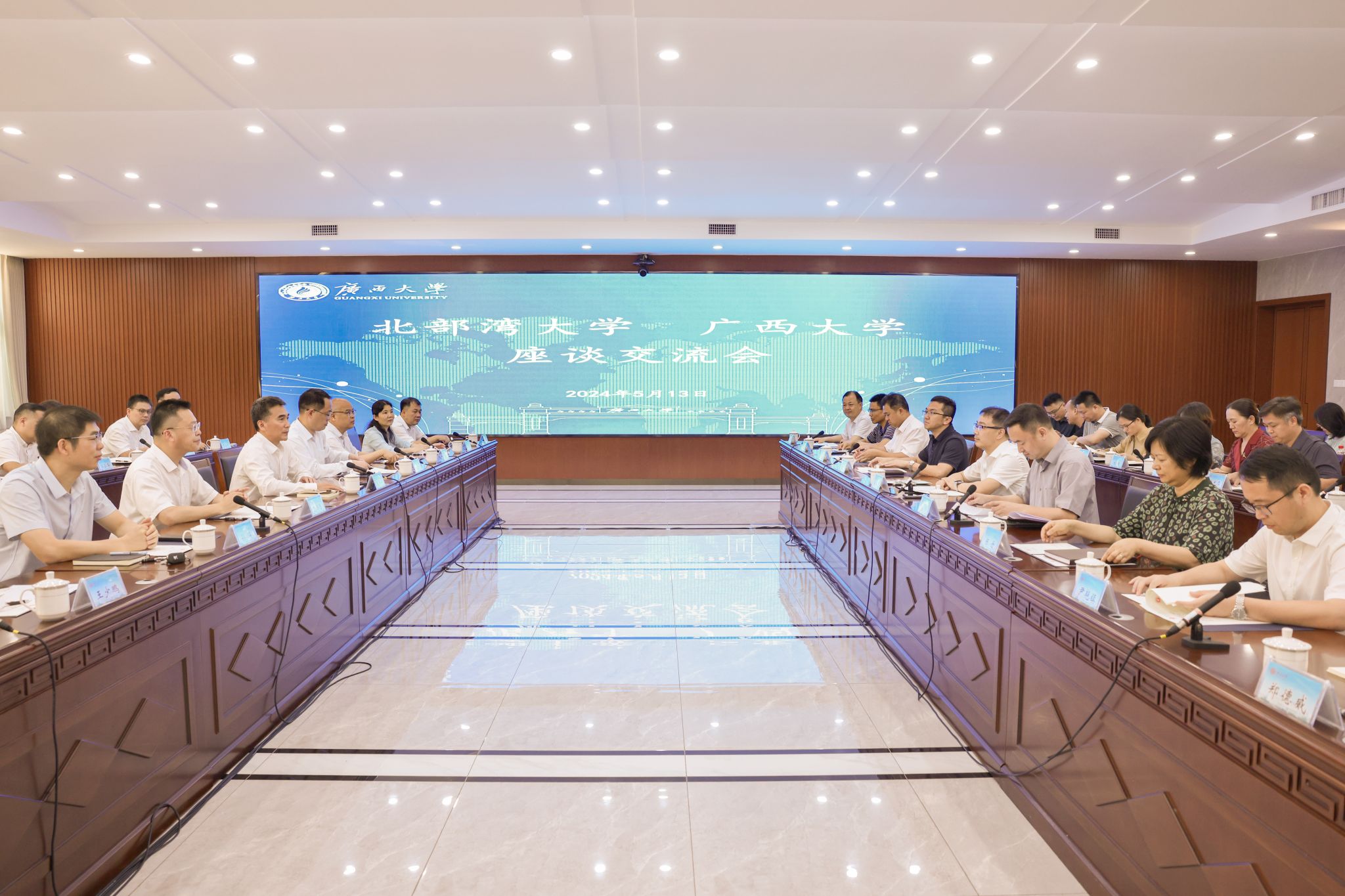 苗剑对广西大学的热情接待表示感谢。他表示,在广西大学的鼎力支持下,北部湾大学近年来在学科建设、师资队伍建设、人才培养等多个关键领域取得了长足的进步,两校之间建立起长期合作机制。现在,湾大正处于改革发展的关键期,他希望西大继续在涉海学科、石油化工等特色专业领域为湾大提供更为深入的对口支援帮扶,达成深度合作,推进我校实现高速发展,争取早日建成海洋特色鲜明的高水平应用型大学。