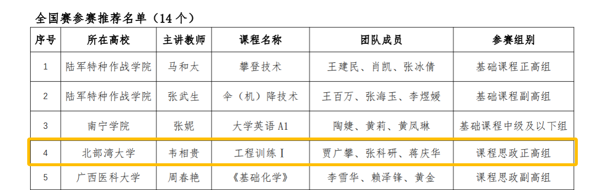 广西第四届高校教师教学创新大赛由自治区教育厅指导、广西高等教育学会主办,广西大学承办。大赛共有218个教师(团队)入围,经过网络评审,119个教师(团队)晋级决赛,最终产生一等奖15项、二等奖30项、三等奖74项。